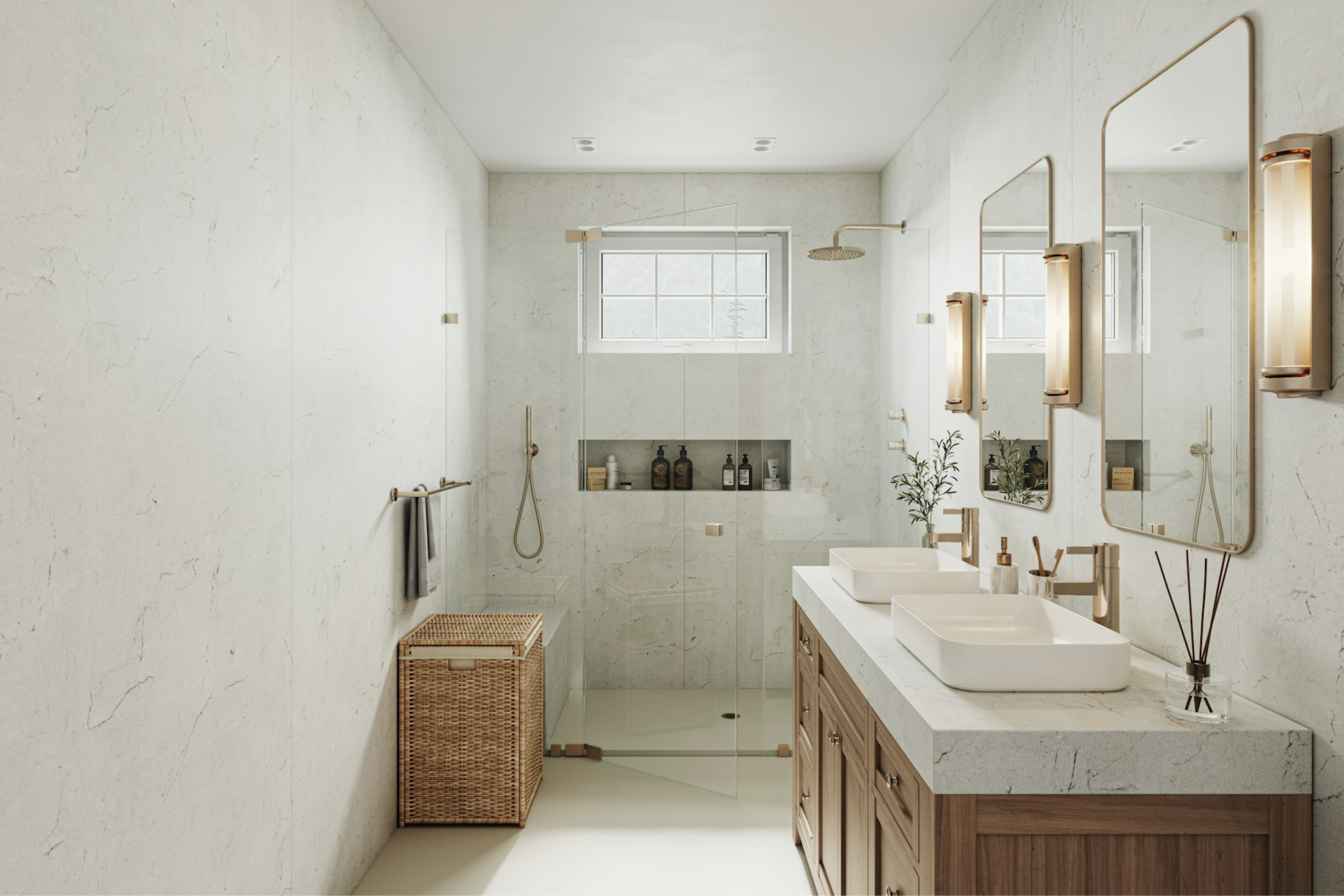 Laguna (velvet) is inspired by the white sand, the mesmerizing reflections of the sun and the waves breaking on the shores of California that are rendered in subtle and delicate veins on an ivory white background.