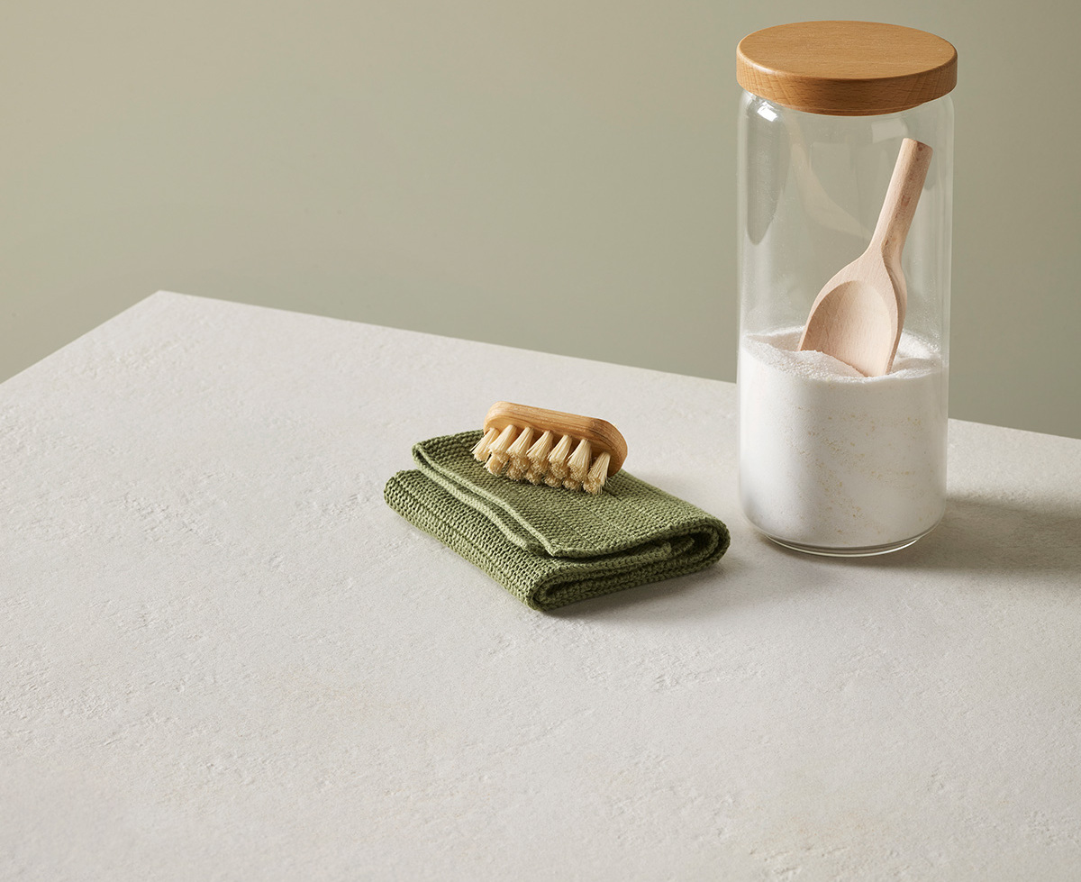 A neutral white with a textured finish, this decor strikes the perfect balance of a clean look with a lived-in feel.